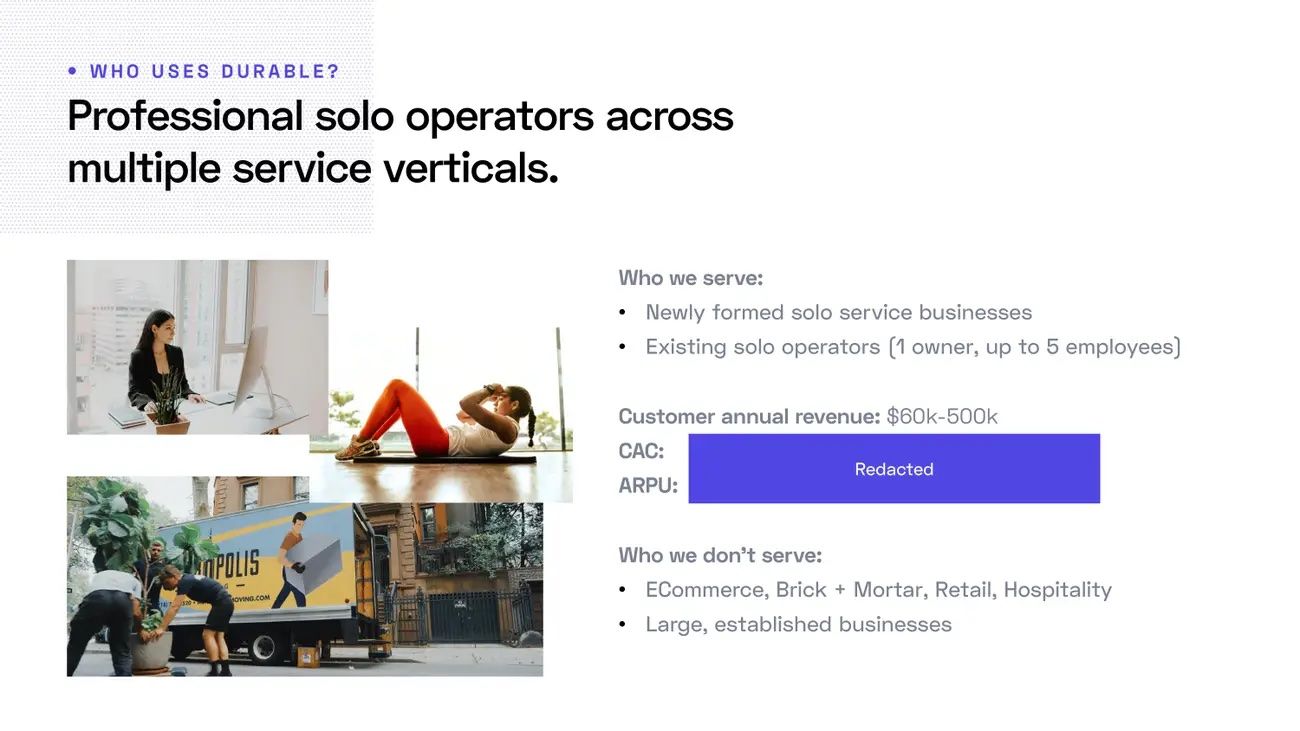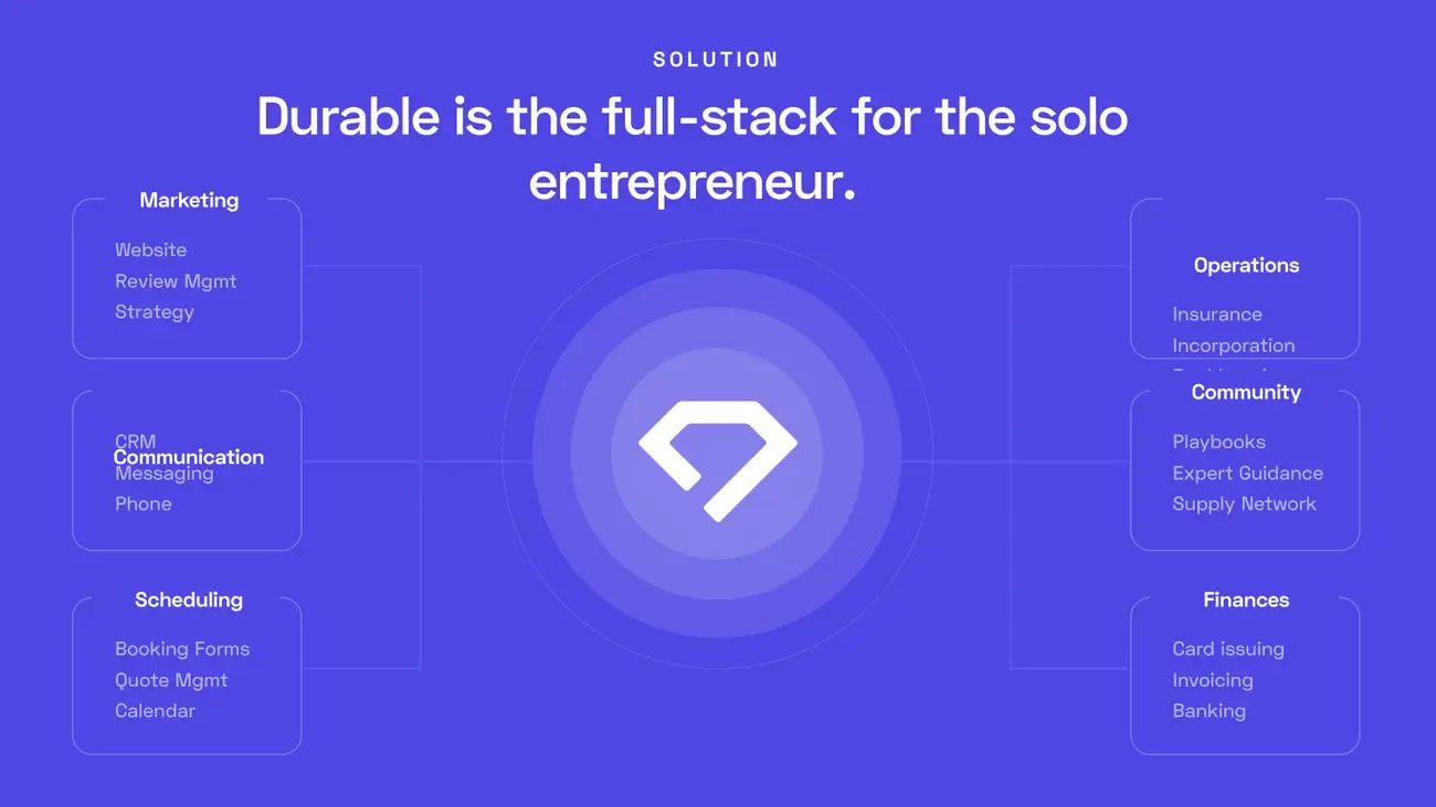 - Company: Durable, founded in 2021, is a generative-AI startup that has created an operating platform for solo business owners.